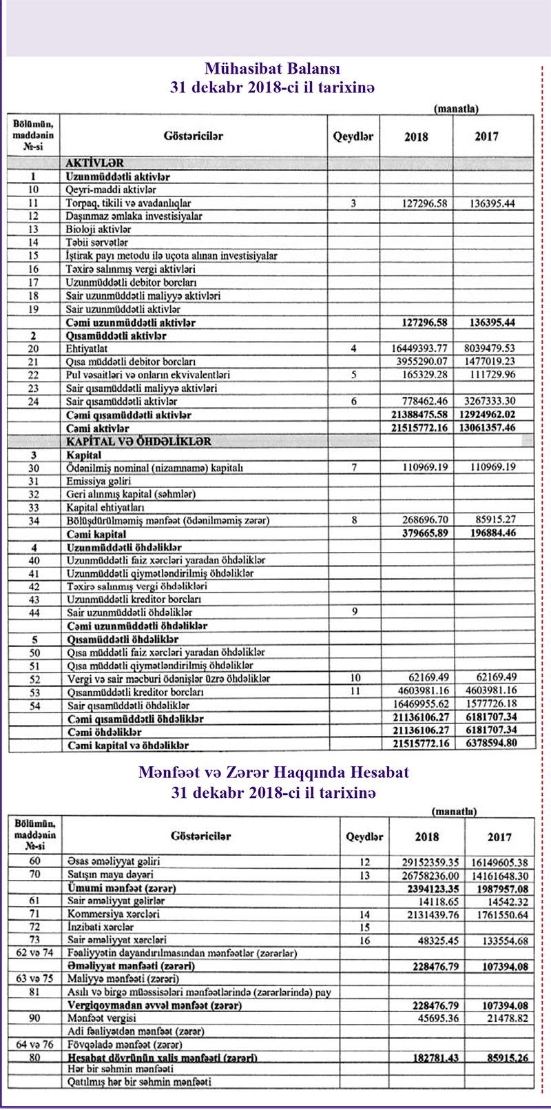 “Marja” şirkətin illik hesabatına istinadən xəbər verir ki, 2017-ci ildə 16 milyon 150 min manat təşkil etmiş əsas əməliyyat gəliri (satışdan gəlir) 2018-ci ildə 29 milyon 152 min manata yüksəlib (13 milyon manat və ya 80,5% artıb). Ötən il şirkətin bütün xərclər çıxıldıqdan sonra 228 min manat əməliyyat mənfəəti yaranıb. Müəssisə əməliyyat mənfəətindən 46 min manat mənfəət vergisi ödəyib.