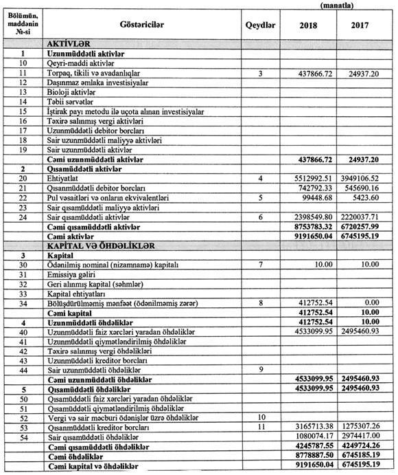 “FOOD TRADE” MMC (VÖEN 3101383641) 31 dekabr 2018-ci il tarixinə Auditor Rəyi və Maliyyə Hesabatları