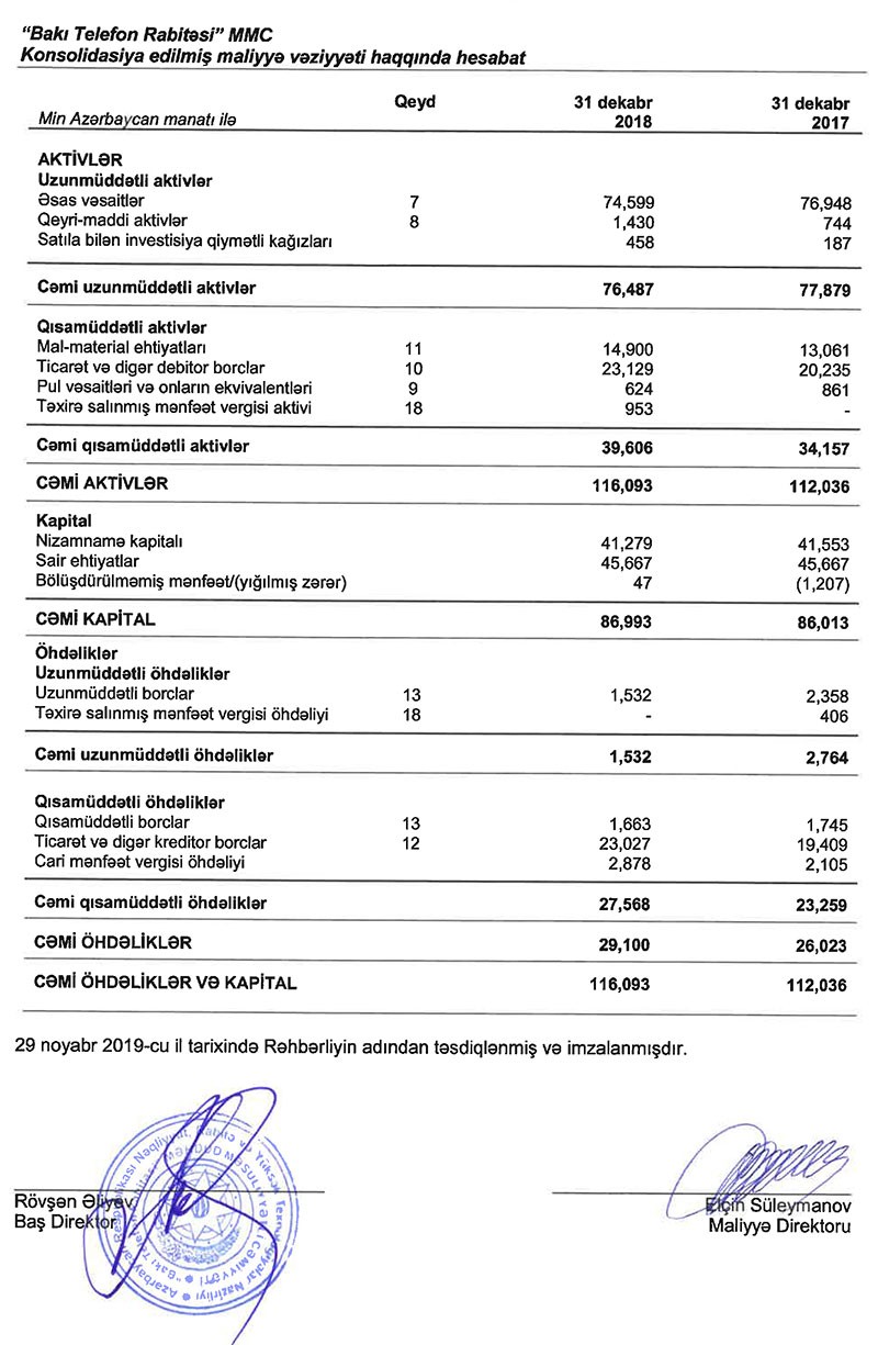 2017-ci illə müqayisədə 2018-ci ildə sair gəlirlərin kəskin azalması “Bakı Telefon Rabitəsi”nin xalis mənfətinin də azalmasına təsir göstərib.