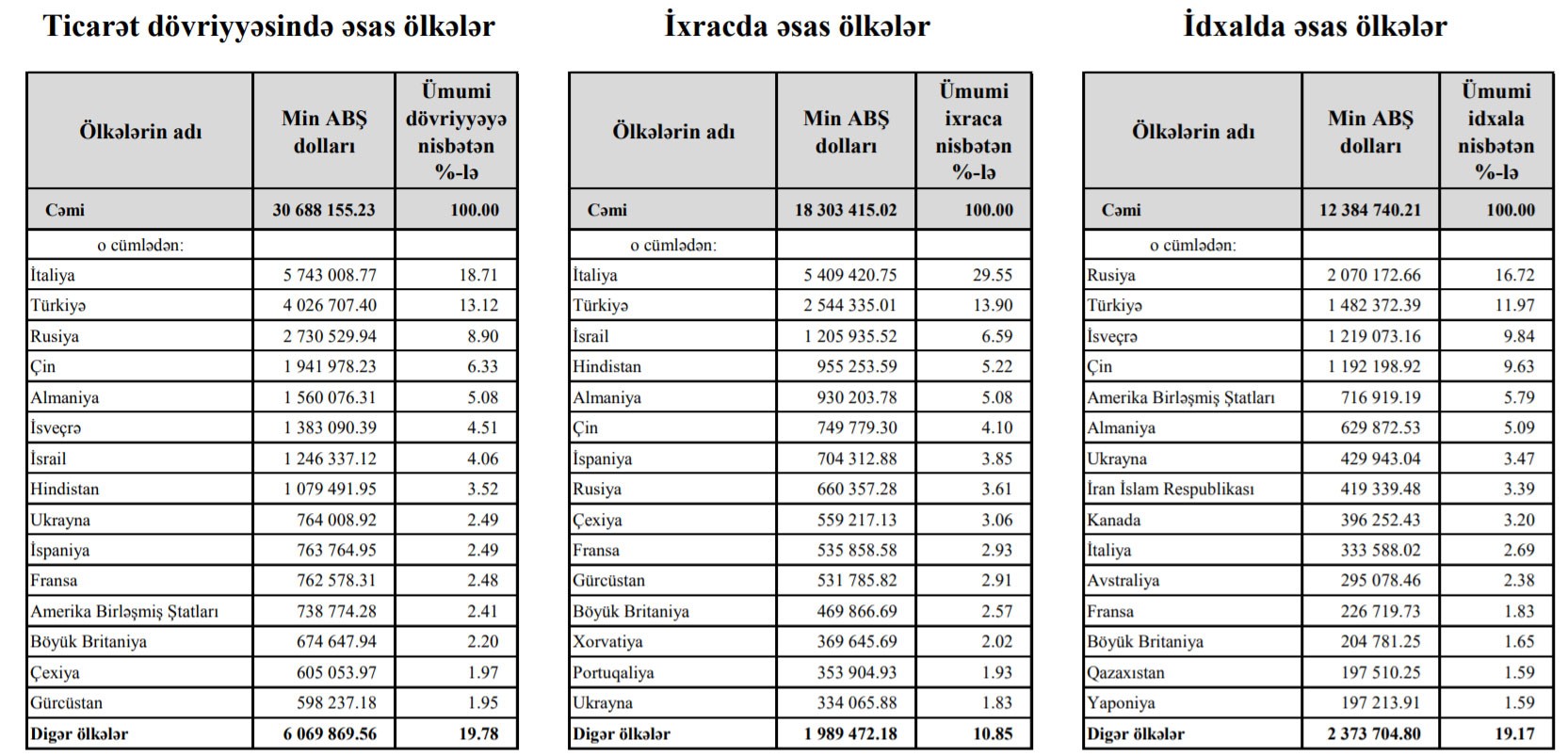 2019-cu ilin 11 ayı ərzində Azərbaycanın Rusiyadan idxalı 2 milyard dolları aşıb.
