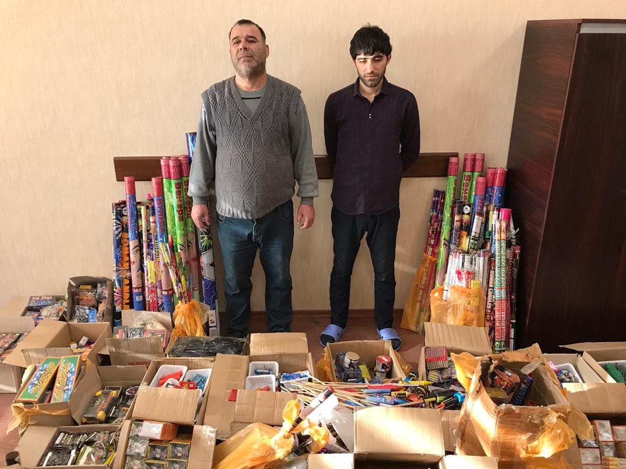 Belə ki, Baş İdarəyə qeyd edilən ticarət mərkəzində yüksək səsyayıcı qabiliyyətə malik pirotexniki maddələrin satışının təşkil edilməsi barədə əməliyyat məlumatı daxil olub. Qeyd olunan ünvanda yüksək səsyayıcı qabiliyyətə malik olan pirotexniki vasitələrin satışını həyata keçirən Astara rayonunda anadan olmuş Seymur Hənifəyev və onun oğlu Fərid Hənifəyev saxlanılıb. Həmin şəxslərə məxsus ticarət mərkəzində yerləşən mağaza və anbara qanunvericiliklə nəzərdə tutulmuş qaydada baxış keçirilən zamanı külli miqdarda pirotexniki vasitələr aşkar olunaraq götürülüb. Saxlanılan şəxslər ifadlərində pirotexniki vasitələrin satışı ilə məşğul olduqlarını etiraf ediblər.