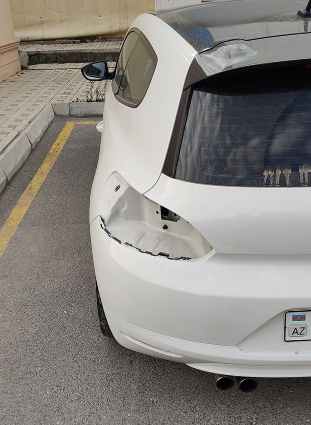 “Mənim 99 RR 779 dövlət nömrə nişanlı VW avtomobilim 28 noyabr tarixində parkinqdə durduğu vaxt Audi 10 RA 271 avtomobili tərəfindən vurulmuş, nəticədə avtomobilin sol qabaq qapısı, sol arxa qanadı, sol içəri dayağı və fənəri zədə almışdır. Polis hadisəni qeydə alaraq mənə dəymiş ziyanın ödənilməsi üçün qarşı tərəfin sığortaçısı “Azsığorta” şirkətinə yönləndirmişdir.
