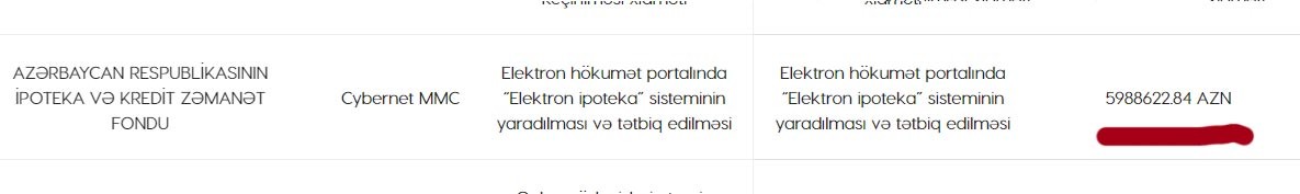“Marja.az”ın araşdırılmasına görə, Azərbaycan İpoteka və Kredit Zəmanət Fondu 2017-ci ildə Elektron hökumət portalında “Elektron ipoteka” sisteminin yaradılması və tətbiq edilməsinə 5 milyon 988 min 622 manat xərcləyib. Sistem Fondun sifarişi ilə “Cybernet” MMC tərəfindən yaradılıb.