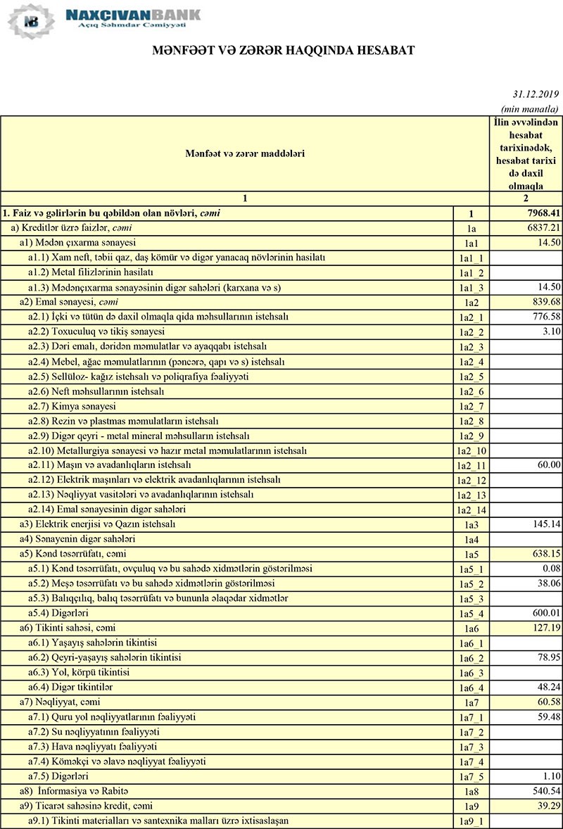 “Naxçıvanbank” ASC 2019-cu ili 5 milyon 179 min manat xalis mənfəət ilə başa vurub. Müqayisə üçün qeyd edək ki, “Naxçıvanbank” ASC 2017-ci ili 4 milyon 7 min manat, 2018-ci ili 5 milyon 429 min manat xalis mənfəət ilə bağlamışdı. İllik müqayisdə Bankın xalis qazancı 250 min manat və ya 4,6% azalıb.