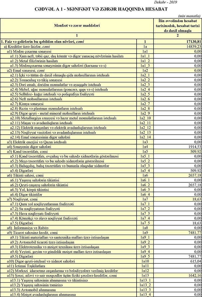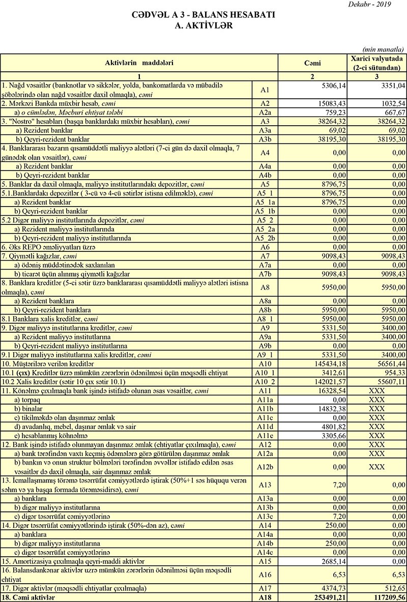 2018-ci ildə 7 milyon 93 min manat əməliyyat mənfəətindən 5 milyon 405 min manat, 2019-cu ildə isə 4 milyon 918 min manat əməliyyat mənfəətindən 983 min manat aktivlər üzrə mümkün zərərlərin ödənilməsi üçün xüsusi ehtiyatın yaradılmasına ayırılıb.