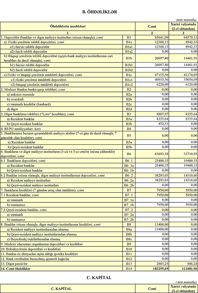 Dövriyyədə olan nağd pulun və bank ehtiyatlarının cəmi məbləği açıqlandı