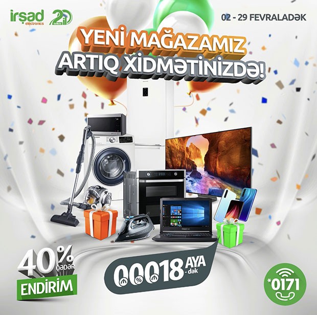 İrşad Electronics 2019-cu ildən mağazalarının konseptual dizaynını yeniləyərək, xidmət şəbəkəsini də genişləndirməyə başlayıb. Yeni ilin ilk ayında Bakının Sahil qəsəbəsində və Qəbələdə yeni konsepsiyalı mağazalar “50 hədiyyə” kampaniyası ilə qapılarını müştərilərin üzünə açıb. Hazırda bu mağazalarda yanvarın 31-dək alış-verişə sərfəli şərtlər davam edir. Mağazaların yenilənməsi və yeni mağazaların açılmasında məqsəd müştərilərə daha əlçatan olmaqla yanaşı, həm də xidmət səviyyəsini yüksəltməkdir. Yeni mağazalar da daxil olmaqla, İrşad Electronics (https://irtelecom.az/) ölkə üzrə 31 mağaza ilə müştərilərin xidmətindədir.