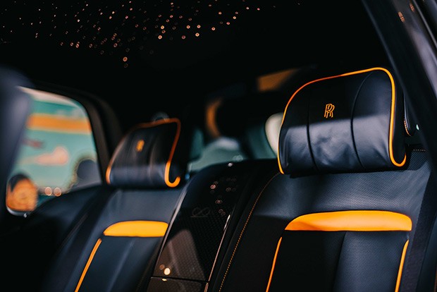 Rolls-Royce Cullinan Black Badge modelinin interyerindəki yenilik dekorativ panellərin arxitekturadakı müasir trendlərdən ilham alınaraq yaradılmış geometrik naxışı və üçölçülü effekti olan karbonla tərtib edilməsidir. Hər bir elementi 6 lak qatı ilə örtüb 72 saat ərzində qurumasını gözləyirlər, sonra isə əllə güzgü parlaqlığına qədər cilalayırlar. Krossoverin tavanı qara dəri ilə örtülür və ulduz yağışı effektini təmin edən 1344 fiber optik işıq diodlarından ibarət “gecə səması” ilə bəzədilir. İlk dəfə olaraq, Cullinan modelinin salonunu “Forge Yellow” rəngli dəri ilə tərtib edilibdir. Və sonunda - avtomobilin arxa oturacağında naxışlanmış sonsuzluq işarəsidir. Rəmz eyni zamanda Rolls-Royce müştərilərinə avtomobilinin sonsuz imkanlarını xatırladaraq ön paneli, kandarı və saat üzərini bəzəyir.