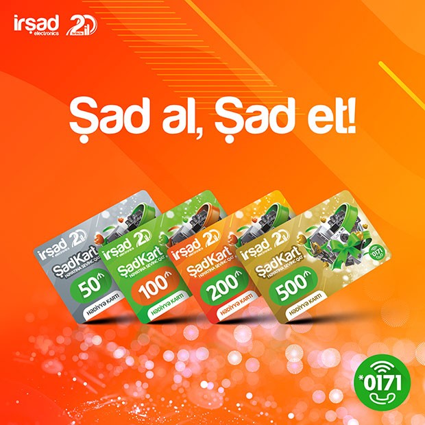 Hədiyyə seçməkdə qərarsız olanlar da unudulmayıb! Sevgililər Günü ərəfəsində İrşad Electronics bayram və şad günlərə özəl olaraq ŞadKart hədiyyə kartlarını müştərilərinə təqdim edir. 50, 100, 200 və 500 nominallı ŞadKart ilə şad günün sahibi özünə istədiyi hədiyyəni seçəcək.