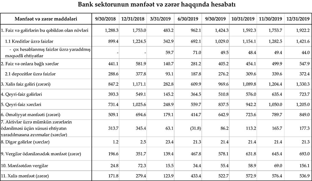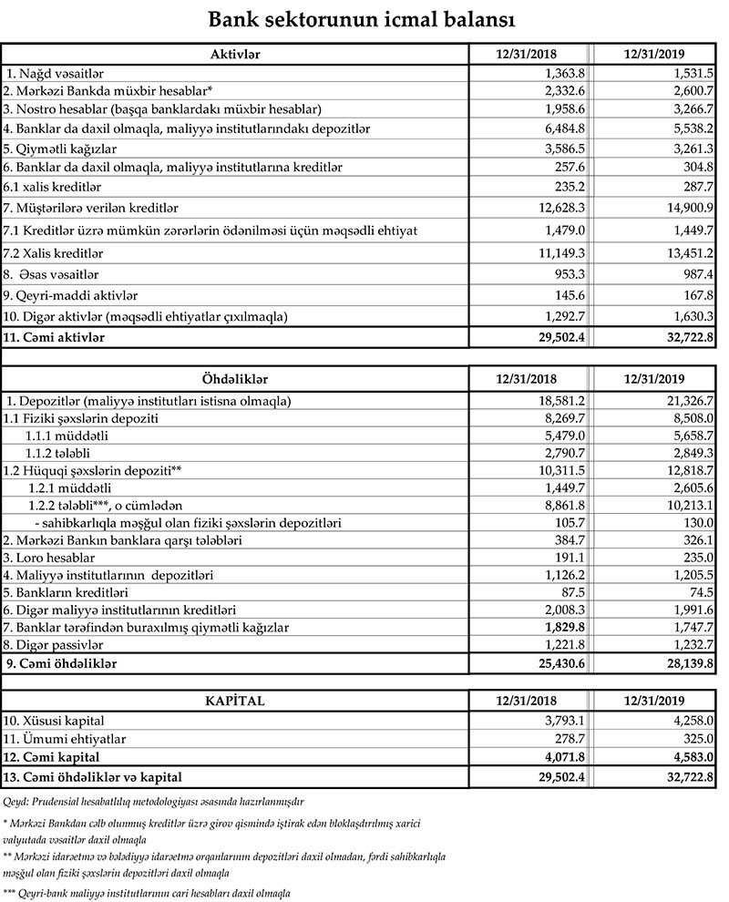 Marja Mərkəzi Banka istinadən 2019-cu ilin sonuna Bank sektoruna dair bir sıra statistikaları təqdim edir