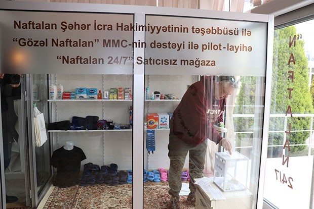 Naftalan Şəhər İcra Hakimiyyətinin başçısı Vüqar Novruzovun təşəbbüsü və şəhərdə fəaliyyət göstərən “Gözəl Naftalan” MMC-nin dəstəyi ilə Azərbaycanda ilk dəfə satıcısız mağaza istifadəyə verilib.