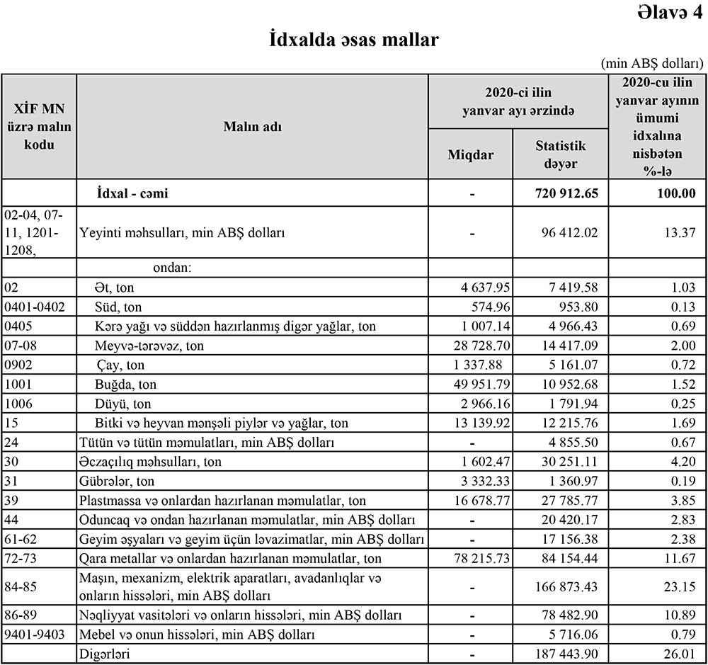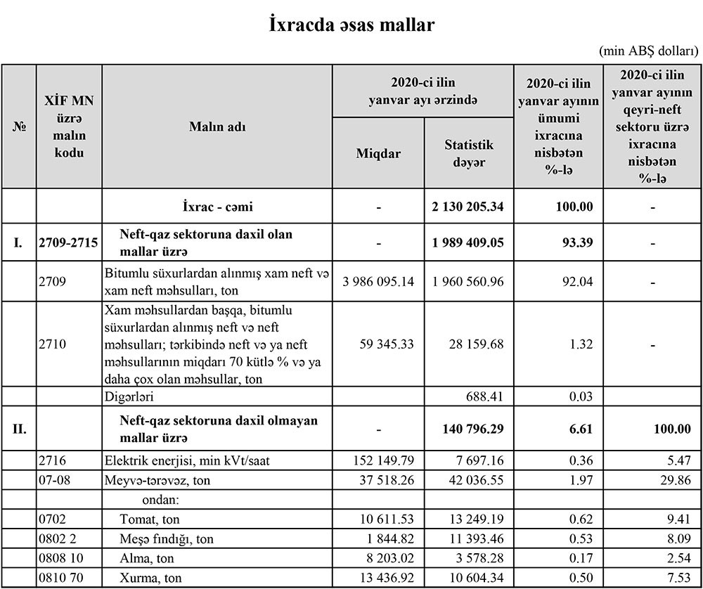 2020-ci ilin Yanvar ayı ərzində Azərbaycanın ən çox ixrac və idxal etdiyi mallar.