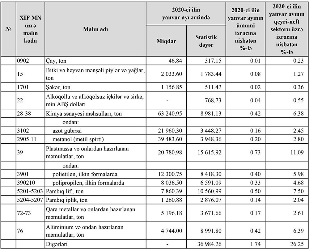 Müqayisə üçün qeyd edək ki, 2018-ci ilin yanvar ayından Azərbaycandan 2 milyon 395 min ton xam neft ixrac edilmiş və 1 milyard 18 milyon 113 min dollar gəlir əldə edilmişdi.