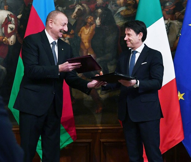 Azərbaycan Respublikasının Prezidenti İlham Əliyev və İtaliya Respublikası Nazirlər Şurasının Sədri Cüzeppe Konte “Azərbaycan Respublikası ilə İtaliya Respublikası arasında Çoxölçülü Strateji Tərəfdaşlığın gücləndirilməsinə dair Birgə Bəyannamə”ni mübadilə etdilər.