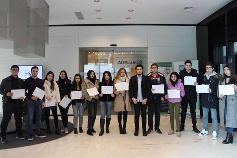 AGBank- ın Elektron Kommersiya və Plastik Kartlar, Xəzinədarlıq , Maliyyə Menecmenti, Kreditin Təhlili Və Qiymətləndirilməsi, İnformasiya Texnologiyaları departamentlərinin müvafiq sahədə ixtisaslaşmış əməkdaşları tərəfindən bankın fəaliyyəti barədə ətraflı məlumatlandırılıblar və sonda “Bank fəaliyyəti ilə tanışlıq” təlimində iştiraka görə tələbələr sertifikatlar ilə təltif olunublar.