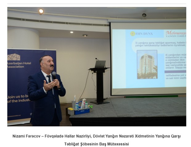 Tədbirdə, həmçinin dünyanın su, sanitariya və enerji texnologiyaları üzrə ixtisaslaşmış qlobal şirkəti olan “Ecolab”ın Azərbaycan üzrə nümayəndəliyi “Ecober” tərəfindən hotellərdə gigiyena və təmizlik standartları, eyni zamanda Fövqəladə Hallar Nazirliyinin nümayəndələri tərəfindən təhlükəsizlik standartlarının əhəmiyyəti barədə məlumat verilib.