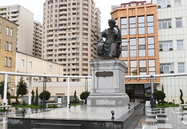 Prezident İlham Əliyev Mərkəzi Neftçilər Xəstəxanasının yanında Şah İsmayıl Xətainin heykəlinin köçürüldüyü yeni salınmış parka gəldi.