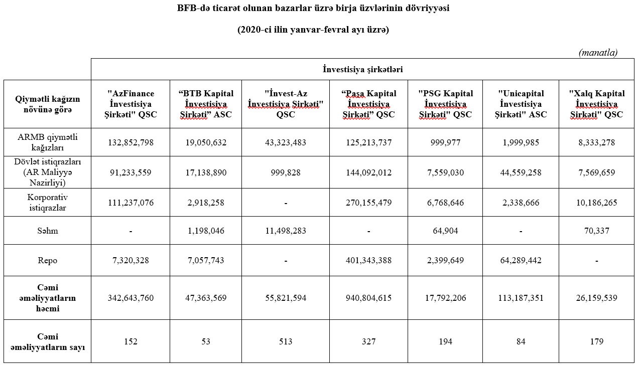 Birja üzvlərinin dövriyyələri açıqlandı - SİYAHI
