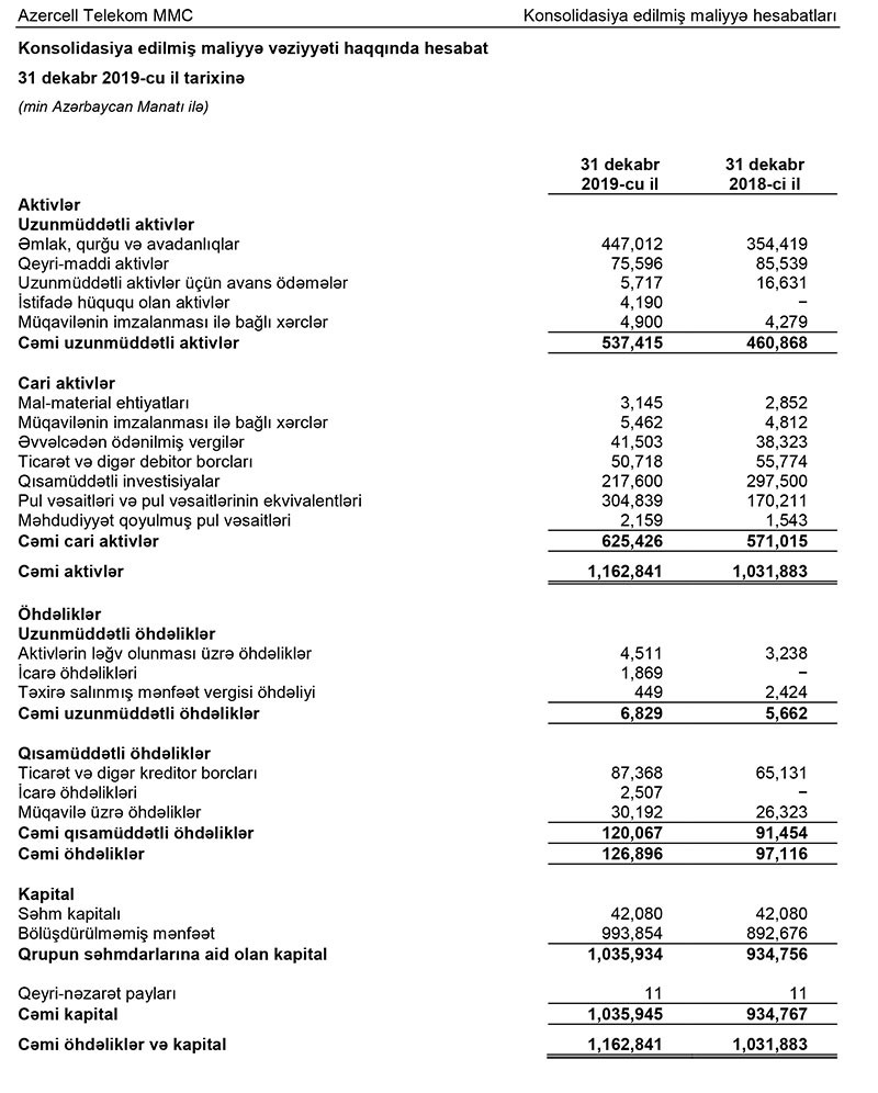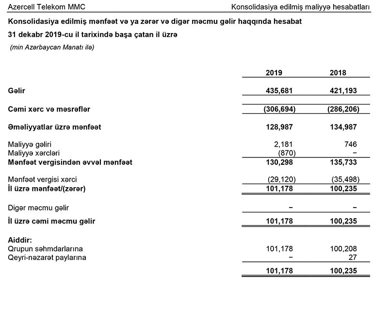 “Azercell Telecom” MMC 2019-cu ili 101 milyon 178 min manat xalis mənfəət ilə başa vurub.