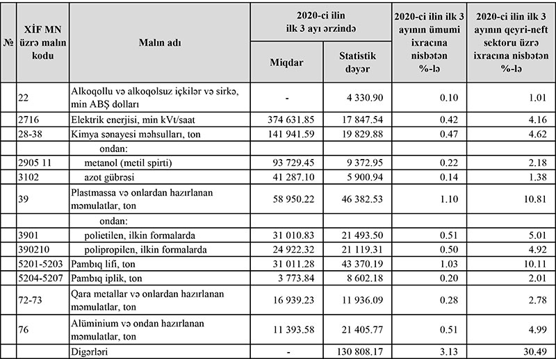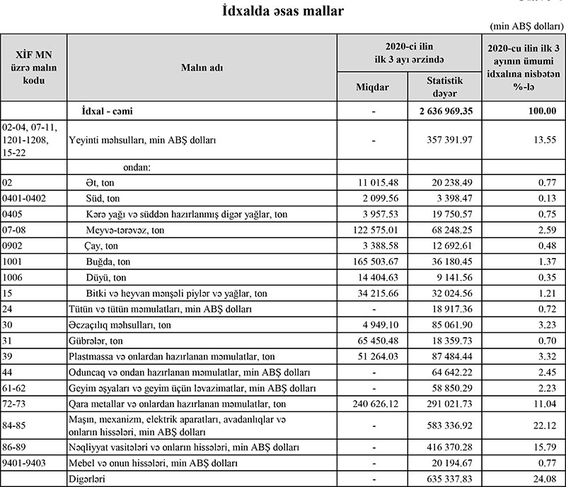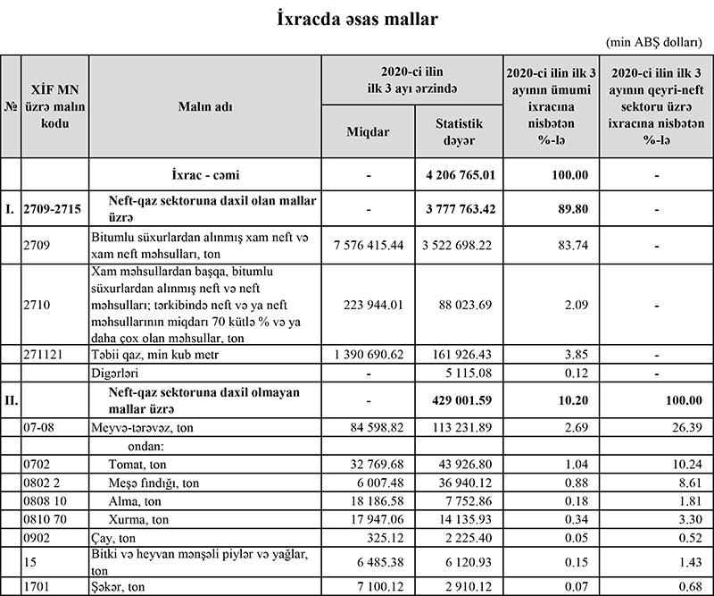 2020-ci ilin yanvar-mart ayları ərzində (ilk 3ayda) Azərbaycanın ən çox ixrac və idxal etdiyi mallar.