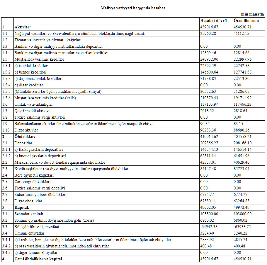 31 Mart 2020-ci il tarixində “AGBank” 50 milyon 101 min manat məcmu kapitala malik olub.