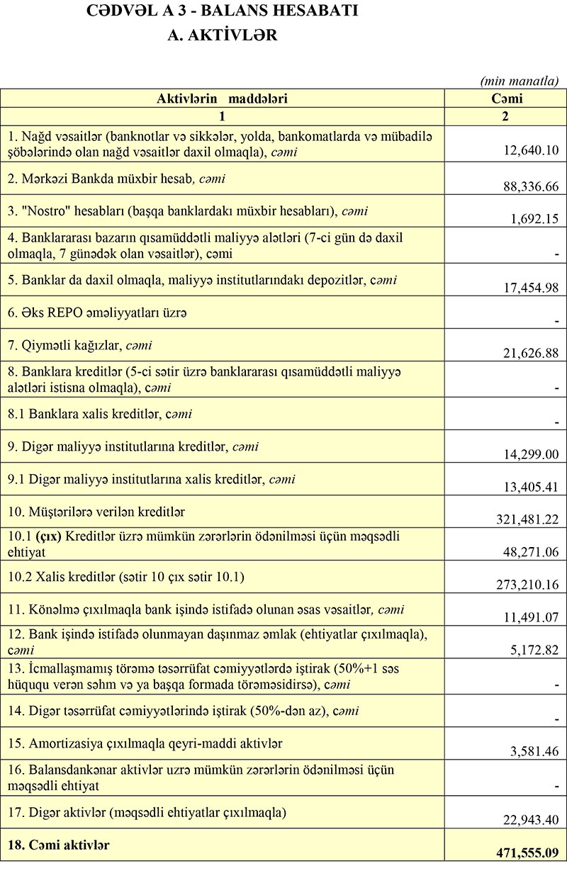 Xatırladaq ki, 2019-cu ilin yanvar-mart dövründə “Yelo Bank”ın cəmi əməliyyat gəlirləri 19 milyon 219 min manat, cəmi əməliyyat xərcləri isə 10 milyon 95 min manat təşkil etmiş, nəticədə Bankın 9 milyon 125 min manat əməliyyat mənfəəti yaranmışdı. Əməliyyat mənfəətinin 6 milyon 99 min manatı ehtiyatlara ayrıldığından Bank ilk rübü 3 milyon 26 min manat xalis mənfəət ilə başa vurmuşdu.