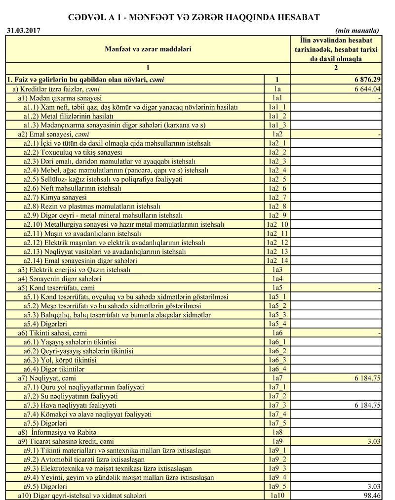 “Bank Silk Vey” ASC 2017-ci ilin 1-ci rübünü 2 milyon 35 min manat xalis mənfəət ilə başa vurub.