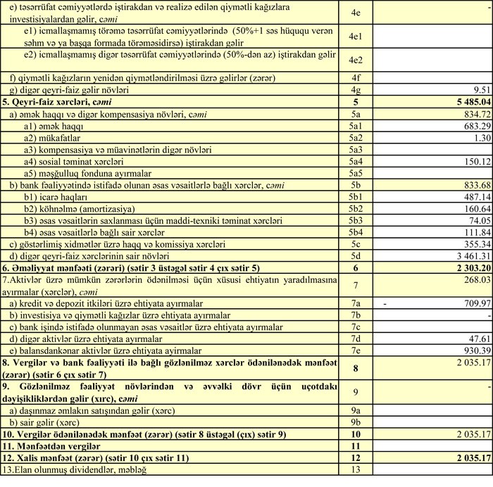 “Marja” Bankın maliyyə hesabatlarına istinadən xəbər verir ki, bu ilin yanvar-mart aylarında Bankın cəmi gəlirləri 10 milyon 703 min mant olub. Faiz və qeyri-faiz xərcləri çıxıldıqdan sonra Bankın 2 milyon 303 min manat əməliyyat mənfəəti qalıb. Bank əməlyyat mənfətinin 268 min manatını aktivlər üzrə mümkün zərərlərin ödənilməsi üçün xüsusi ehtiyatın yaradılmasına ayırıb. Nəticədə Bankın 2 milyon 35 min manat xalis mənfəti qalıb. Bank birinci rübdə mənfəət vergisi ödəməyib.