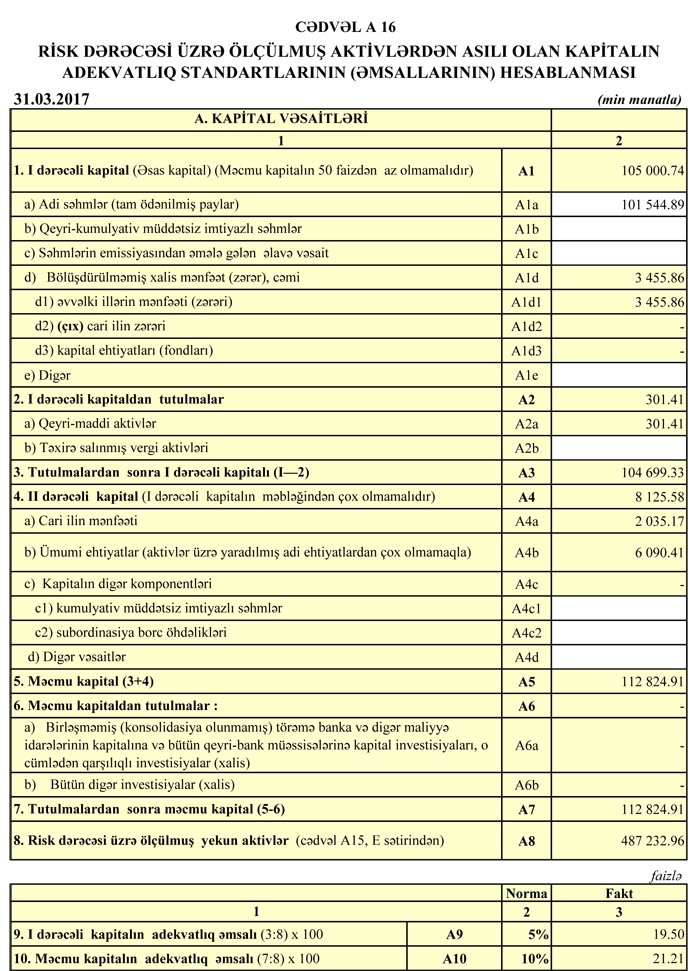 Xatırladaq ki, “Bank Silk Vey” 2016-cı ildə ehtiyatlara böyük ayırma (16 milyon 767 min manat) səbəbindən ili 1 milyon 558 min manat xalis mənfəət ilə başa vurmuşdu.