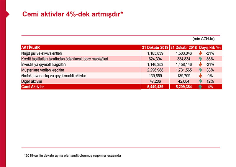 31 dekabr 2020-ci il tarixinə Bankın aktivlərinin açıqlaması aşağıdakı kimidir: