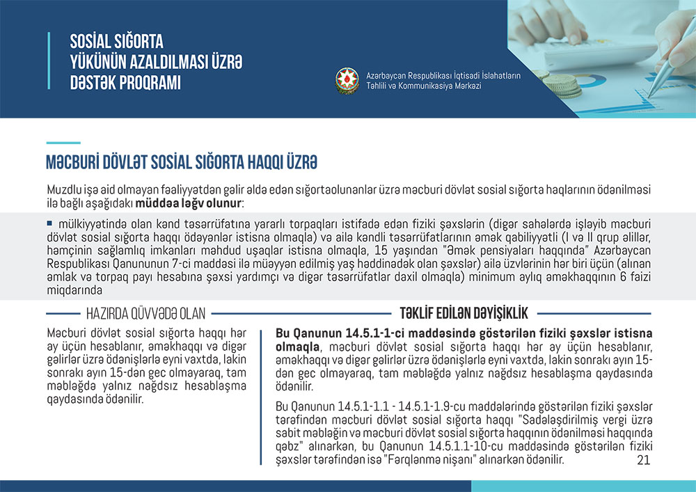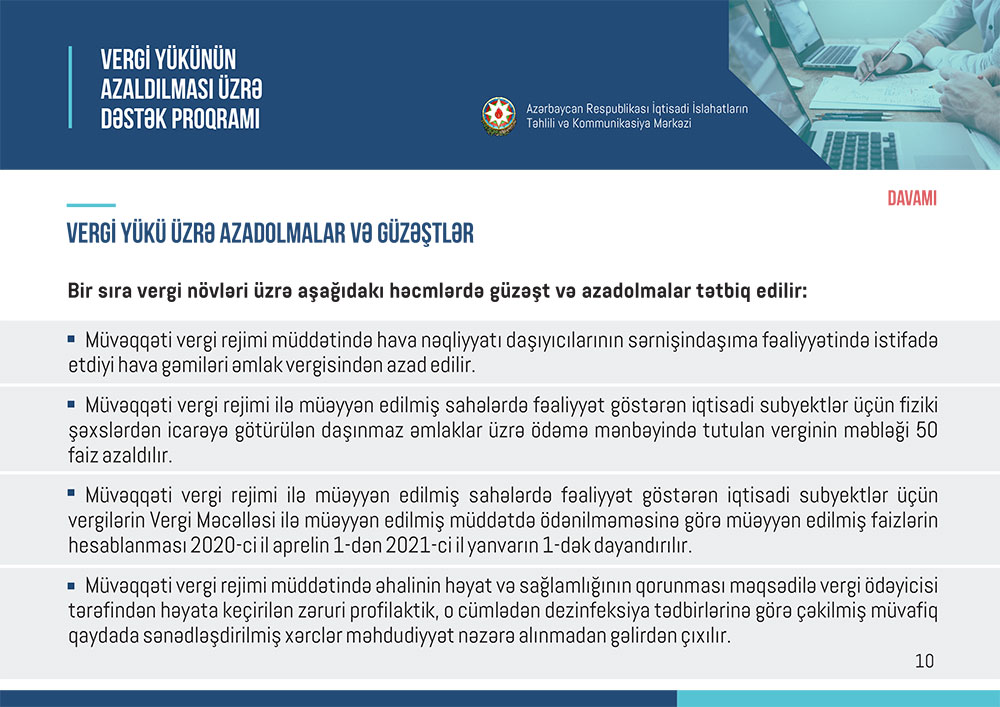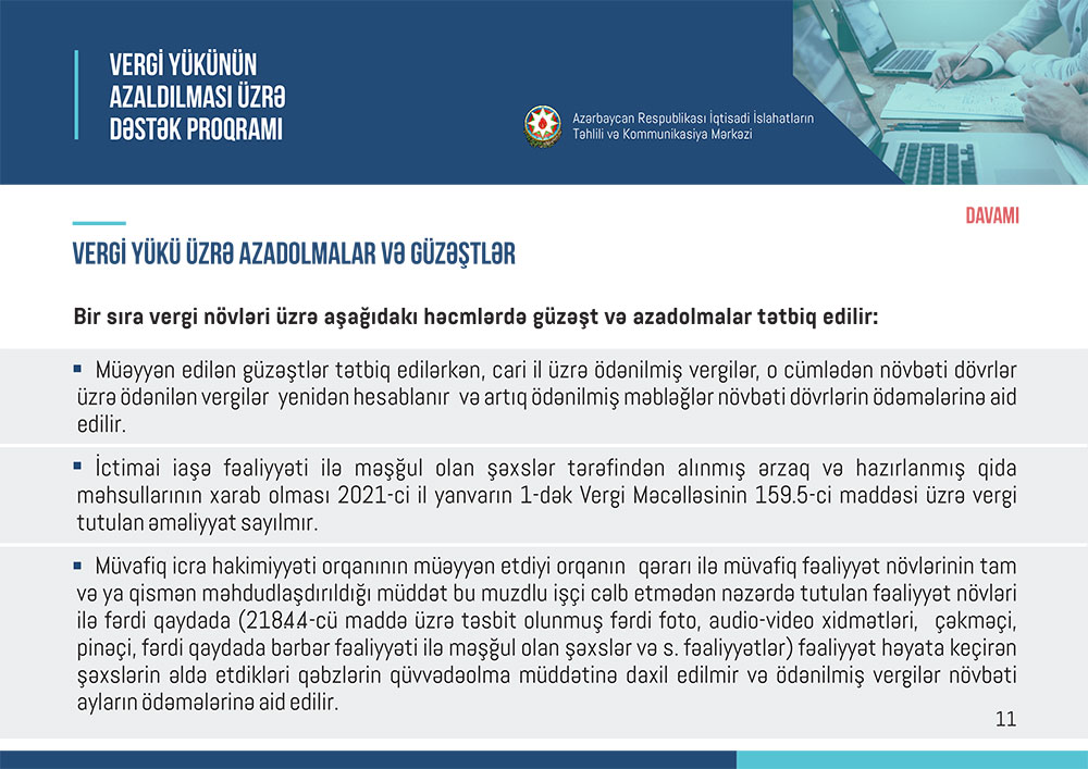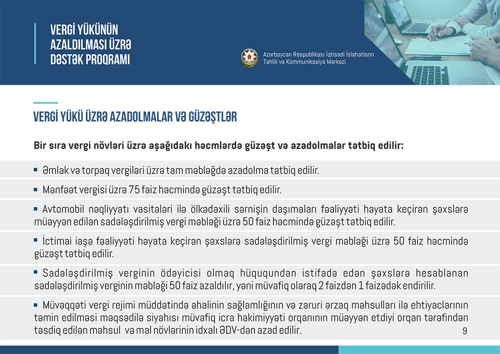Marja “İslahat icmalı”nın vergi və sosial sığorta güzəştlərinə həsr olunmuş ayını təqdim edir.