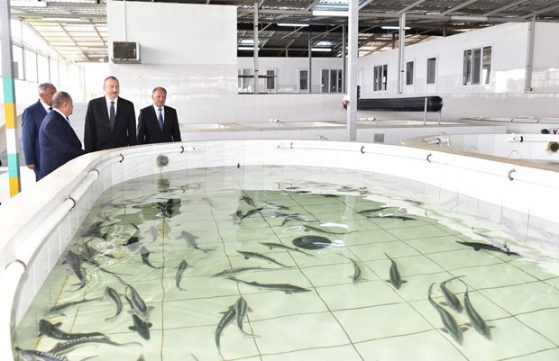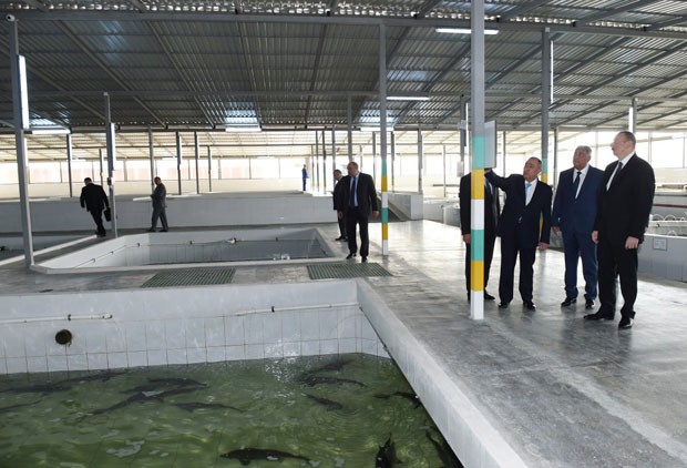 Dövlətimizin başçısına müəssisənin inkişaf planı, ərazidəki tikililər və Mingəçevir su hövzəsinin balıqartırma sahəsi barədə məlumat verildi. Bildirildi ki, Mingəçevir su hövzəsinin balıqartırma sahəsində nərəcinsli balıqlar üçün sahəsi 9067 kvadratmetr olan 87 plastik qəfəs quraşdırılıb. Bundan başqa, burada tor yumaq üçün üzən qurğu və üzən qaldırıcı kran da var. Mingəçevir balıq zavodunda isə inkubasiya sexi, beton hovuzlar, soyuducu və yem anbarları, helikopter meydançası, yeməkxana, ofis binası, qazanxana da inşa olunub.