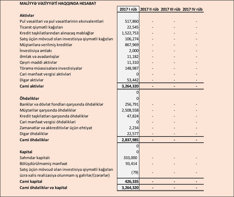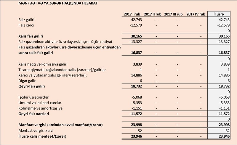 “Marja” xəbər verir ki, bu ilin yanvar – mart aylarında Bankın faiz gəlirləri 42 milyon 743 manat, qeyri-faiz gəlirləri 18 milyon 732 min manat təşkil edib. Bank gəlirinin 13 milyon 327 min manatını faiz qazandıran aktivlər üzrə dəyərsizləşmə üçün ehtiyata ayırıb.