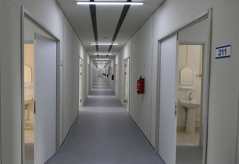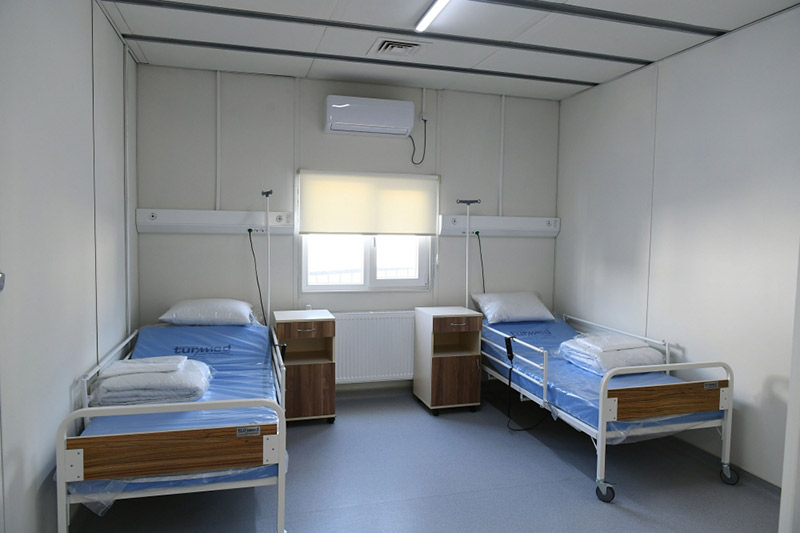 Azərbaycan Prezidenti İlham Əliyevə və birinci xanım Mehriban Əliyevaya məlumat verilib ki, digər modul tipli infeksion xəstəliklər korpuslarında olduğu kimi burada da orta simptomları olan infeksion koronavirus xəstələrin qəbulu və müalicəsi üçün şərait yaradılıb. Bildirilib ki, eyni zamanda, yeni tibb müəssisəsinin daha ağır simptomları olan xəstələrin qəbulu üçün əlavə avadanlıqlarla təchiz olunması istiqamətində işlər görülür. Üç korpusdan ibarət olan, ümumilikdə 100 palata və 200 çarpayılıq bu xəstəxana kompleksi mərkəzləşdirilmiş oksigen generator sistemi, həmçinin xüsusi havalandırma sistemi ilə təchiz olunub. Bu sistem havanı ventilyasiya qurğusu ilə təmizlədikdən sonra palatalara ötürəcək.