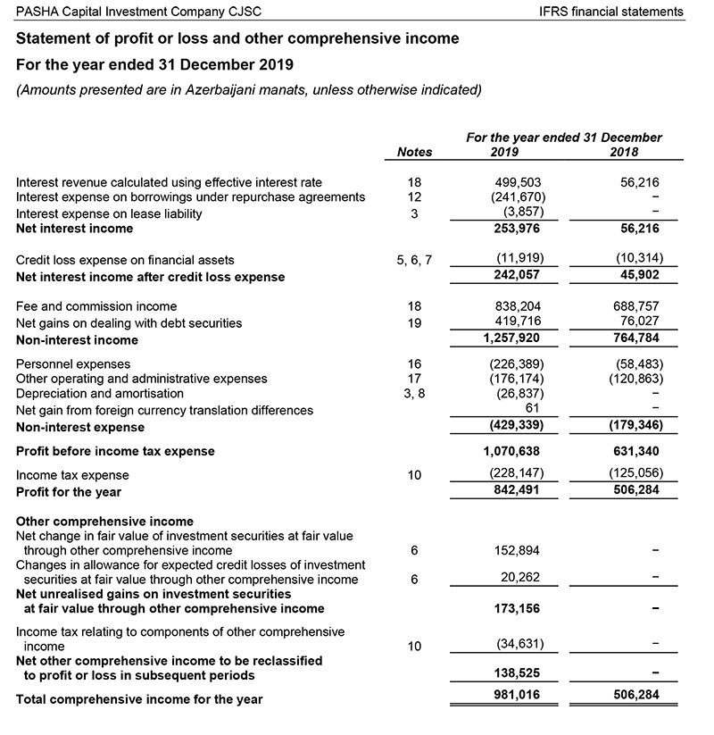 Ötən il “PAŞA Kapital”ın vergiyəqədərki mənfəəti 1 071 min manat (əvvəlki ilə nisbətən 69,7% çox), mənfəət vergisi ödəmələri isə 228 min manat (82,4% çox) təşkil edib.