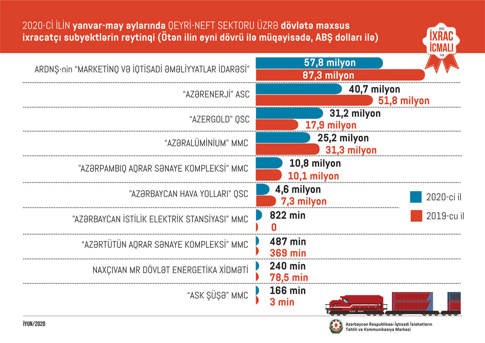 İqtisadi İslahatların Təhlili və Kommunikasiya Mərkəzinin “İxrac İcmalı”nın 2020-ci ilin iyun sayı təqdim edilib.