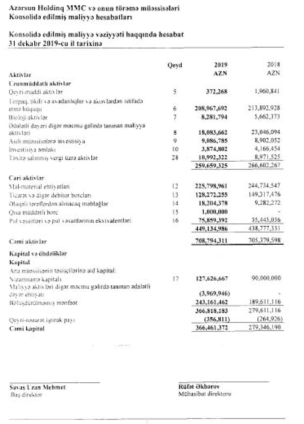 31 Dekabr 2019-cu il tarixində “Azərsun Holdinq” MMC 708 milyon manat cəmi aktivlərə malik olub. Şirkətin aktivləri il ərzində 0,5% artıb.