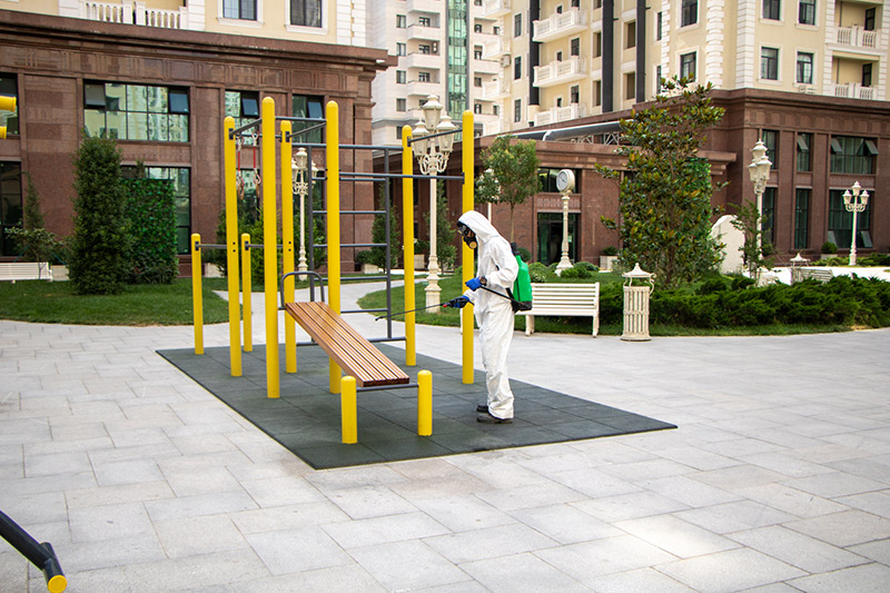 (®️) Ölkənin ən iri premium sinif yaşayış kompleksi “Renessans Palace” sakinlərini COVİD-19 virusundan qorumaq məqsədilə bütün kompleks ərazisində növbəti dəfə dezinfeksiya tədbirlərini həyata keçirib. Yaşayış kompleksinin yalnız sakinlərin ixtiyarında olan 1,5 hektarlıq həyəti, uşaq və idman meydançası, bütün blokları və mərtəbələri tam dezinfeksiya olunub.