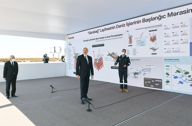 Azərbaycan Respublikasının Prezidenti İlham Əliyev avqustun 10-da Heydər Əliyev adına Bakı dərin özüllər zavodunda “Qarabağ” yatağının dayaq blokunun dənizə yola salınması mərasimində iştirak edib.