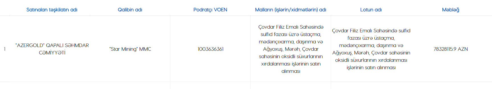 Marja xəbər verir ki, tenderin qalibi "Star Mining" MMC-dir.