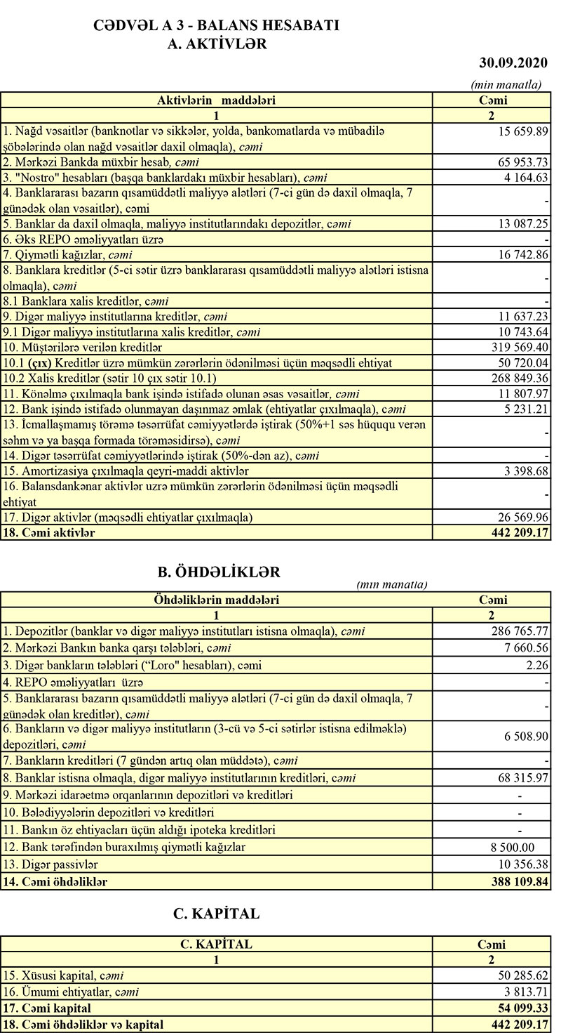 Qeyd edək ki, 30 Sentyabr 2020-ci il tarixində Yelo Bankın yığılmış zərəri 308 milyon 564 min manata çatıb. Bankın 358 milyon manatlıq nizamnamə kapitalı yığılmış zərər qədər "əriyib" və 49 milyon 436 min manatı qalıb.