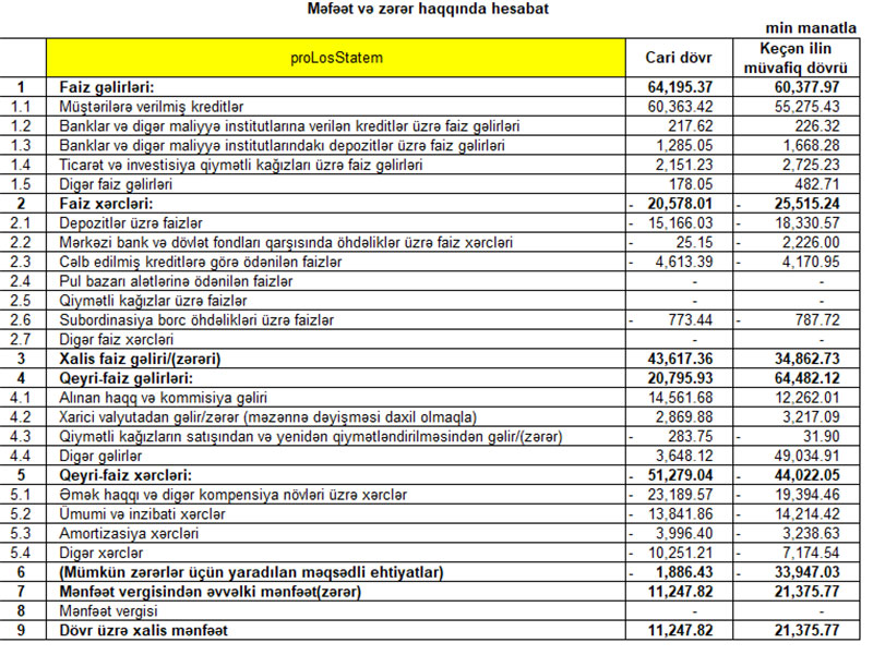 Unibank maliyyə göstəricilərini açıqladı – 11 MİLYON MANAT....