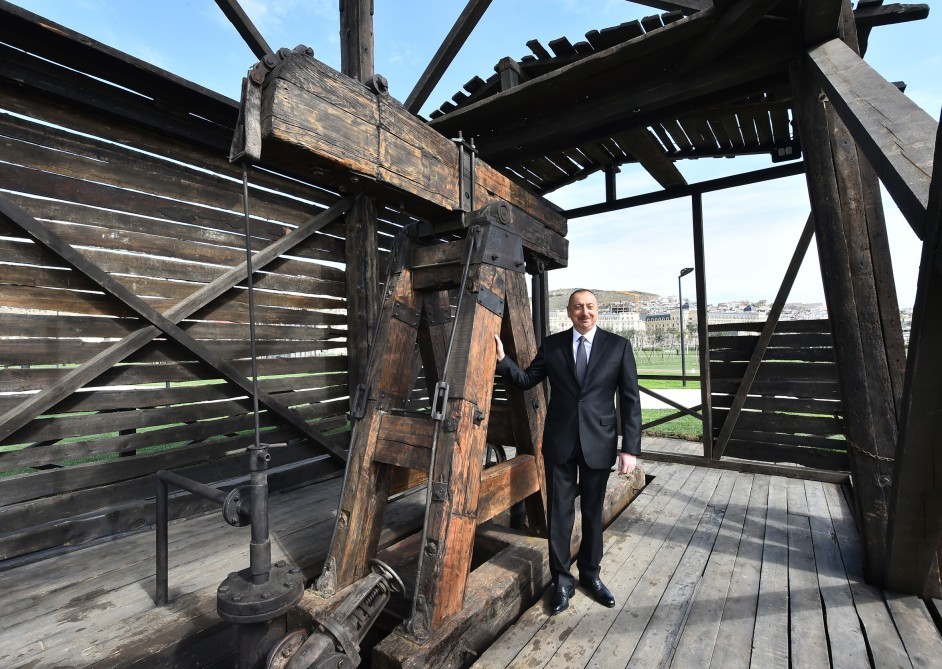 SOCAR-ın prezidenti Rövnəq Abdullayev dövlətimizin başçısına görülən işlər barədə məlumat verdi. Bildirildi ki, XIX əsrdə burada “Nobel qardaşları neft hasilatı şirkəti”nə məxsus neft və neft məhsullarının daşınması üçün ağcaqayın ağacından hazırlanmış faner borunun bir hissəsi, həmçinin həmin şirkətin sifarişinə əsasən Bakıya gətirilmiş quyuüstü avadanlıqlar da nümayiş olunur. Hələ qədim dövrlərdən Azərbaycan dünyada neftin vətəni sayılırdı. Bakının neft mədənlərində quyular bir qayda olaraq əl ilə qazılırdı. XIX əsrin əvvəllərindən etibarən neft quyularının daha mütərəqqi üsullarla qazılması istiqamətində araşdırmalara başlanıldı. 1840-cı illərdə daha mütərəqqi üsullarla quyular qazmaq və neft hasilatını artırmaq üçün yollar axtarılırdı. Tarixi mənbələr və son illərdə Rusiyanın Mərkəzi Dövlət Tarix Arxivindən tapılmış sənədlər dünyada sənaye üsulu ilə neft quyusunun qazılmasına Bibiheybətdə başlanıldığını bir daha sübut edir. Belə sənədlərdən biri Zaqafqaziya Vilayəti Baş İdarəsinin Şura üzvü, dövlət müşaviri Vasili Semyonovun bu vilayətin baş komandanı general Aleksandr Neydqarta yazdığı 1844-cü il 22 dekabr tarixli məktubdur. Məktubda Semyonov Abşeron yarımadasındakı neft mədənlərini ətraflı təsvir edir, hasilatın artırılması üçün konkret texniki və təşkilati təkliflər verir. Semyonovun məktubuna müsbət rəy verildikdən sonra 1845-ci ilin aprelində maliyyə naziri Fyodor Vronçenkonun göstərişi ilə Kaspi Xəzinə Palatası tərəfindən qazma işlərinə min gümüş sikkə ayrılır və Bibiheybət rayonunda kəşfiyyat quyusunun qazılması haqqında tapşırıq verilir. 1846-cı ilin yanvarında Bakı neft və duz mədənlərinin direktoru, dağ mühəndisləri korpusunun podpolkovniki Nikolay Voskoboynikovun rəhbərliyi ilə Bibiheybət yatağında iki quyunun qazılmasına başlanılır. Quyulardan biri 21 metr dərinlikdən neft verir və bununla da dünyada sənaye üsulu ilə neft hasilatının əsası qoyulur. 1847-ci il 8-14 iyul tarixlərində Qafqaz canişini knyaz Mixail Vorontsovun imzaladığı hesabatlarda da dünyada ilk neft quyusunun Xəzər dənizinin sahilində qazılması faktı təsdiq olunur. Neftçıxarma işində əldə olunmuş inqilabi yeniliklər XIX əsrin 50-ci illərində Abşeronda hasilatın yüksəlməsinə, emal sənayesinin yaranmasına böyük təkan verib. Mexaniki üsulla quyu qazılması texnikasının və texnologiyasının inkişafı sayəsində Bakıda bir sıra yeni neft yataqları istismara verilib, quyular qazılıb, hasilat artırılıb, neft sənayesi infrastrukturu inkişaf etdirilib. 1899-1901-ci illərdə 11,5 milyon ton neft hasil edən Bakı neft sənayesi dünyada birinci yeri tuturdu. Müqayisə üçün deyək ki, 1859-cu ildə sənaye üsulu ilə neft quyularının qazılmasına başlanılmış Amerika Birləşmiş Ştatlarında isə bu göstərici o zaman 9,1 milyon ton təşkil edirdi.