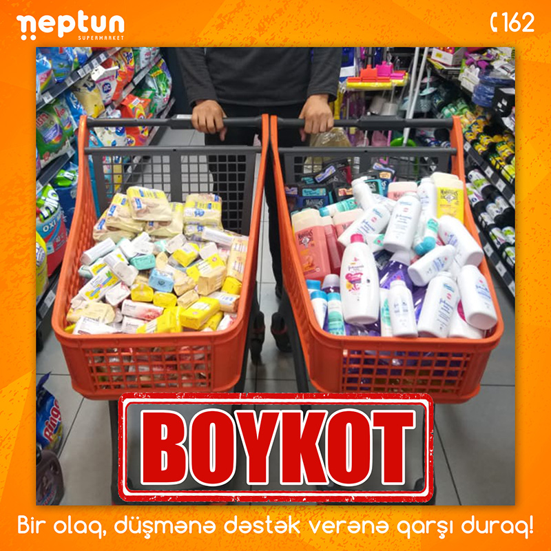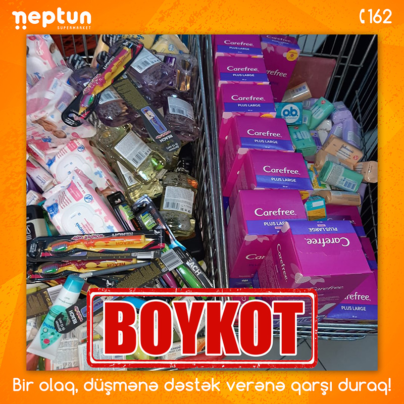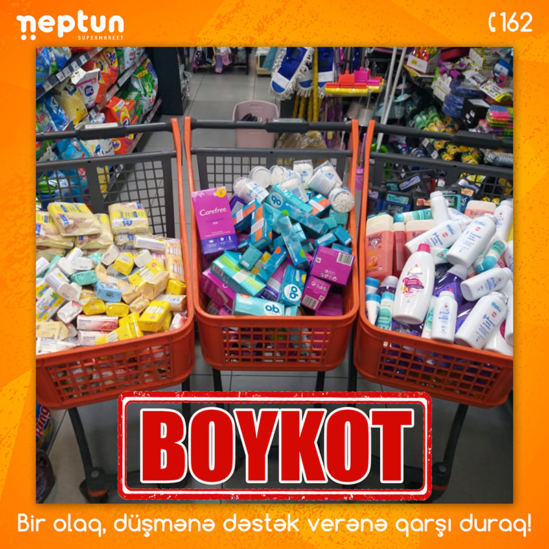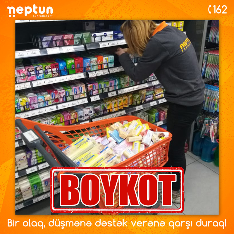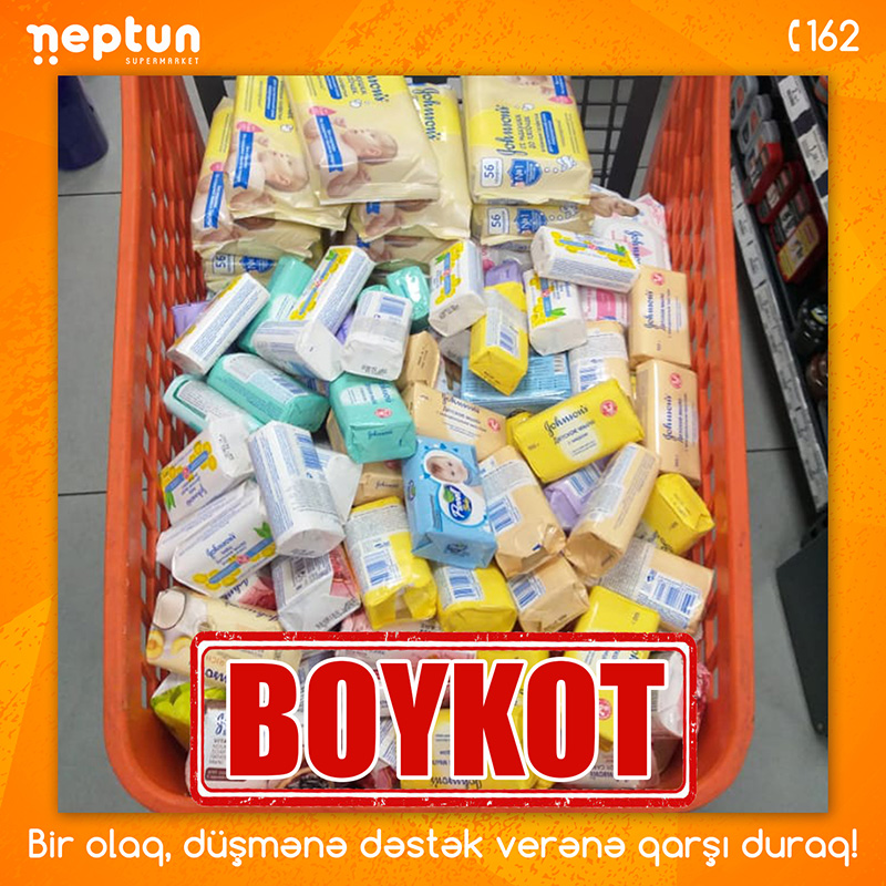 Məlumatda deyilir ki, "NEPTUN” supermarket şəbəkəsi qondarma rejimi açıq dəstəkləyən "Johnson Johnson” şirkətinin bütün məhsullarını satışdan yığışdırıb. Sözügedən şirkət sosial şəbəkələr üzərindən qondarma rejimi dəstəkləyəndən sonra, "NEPTUN” supermarket şəbəkəsinin rəhbərliyi dərhal adekvat addım atmağa qərar verib.