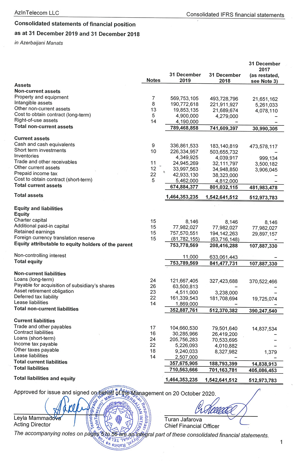 Bu il yanvarın 1-nə “AzInTelecom”un aktivləri 1 milyard 464 milyon 353 min manat olub ki, bu da 1 il əvvələ nisbətən 5,1% azdır. Hesabat dövründə şirkətin öhdəlikləri 1,3% artaraq 710 milyon 563 min manata çatıb, balans kapitalı isə 10,4% azalaarq 753 milyon 789 min manata düşüb.
