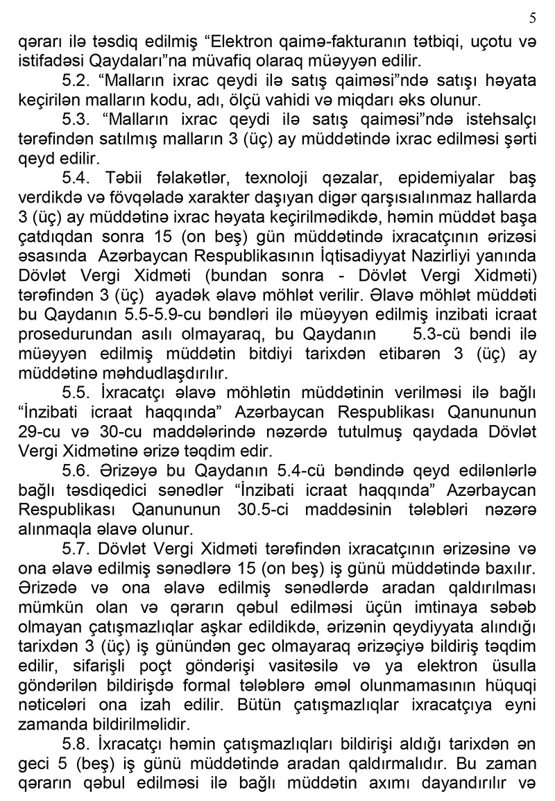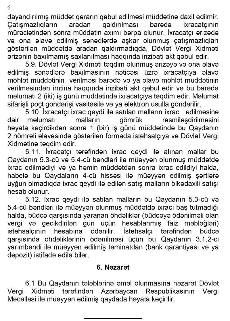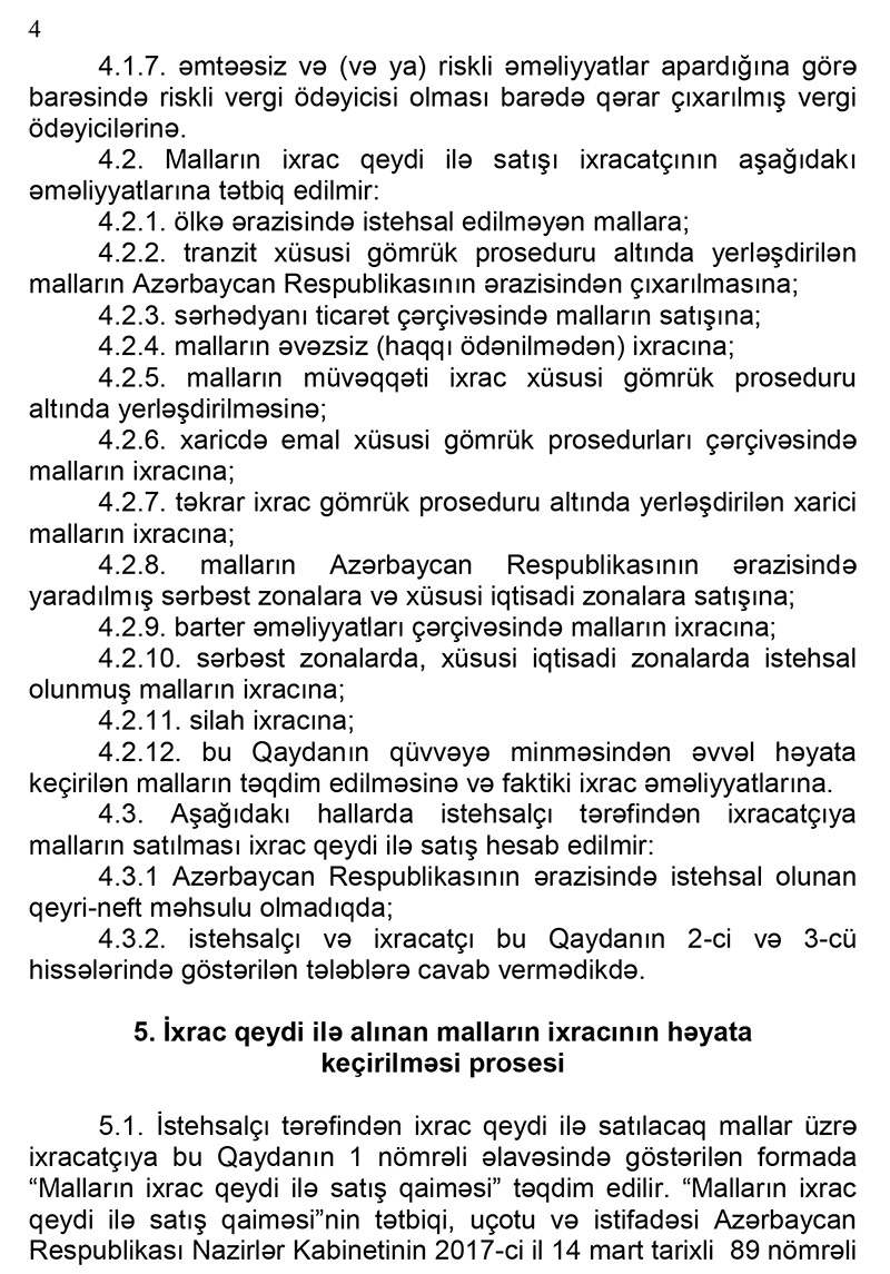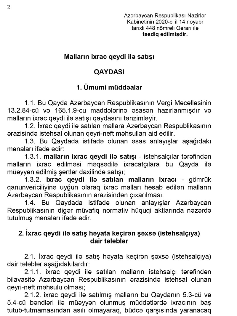 Bu barədə Nazirlər Kabinetinin 2020-ci il 14 noyabr tarixli “Malların ixrac qeydi ilə satışı Qaydası” Qərarının izahında deyilir.