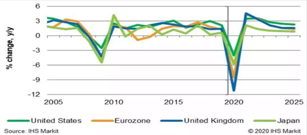 İnkişaf etmiş ölkələrdə real iqtisadi artım və proqnoz: (Mənbə: IHS Markit)