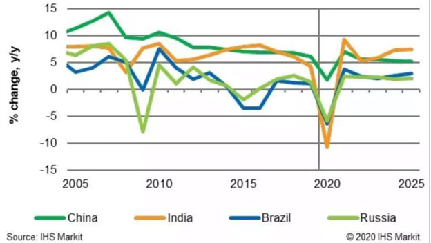 İnkişaf etməkdə olan ölkələrdə real iqtisadi artım və proqnozu (Mənbə: IHS Markit)