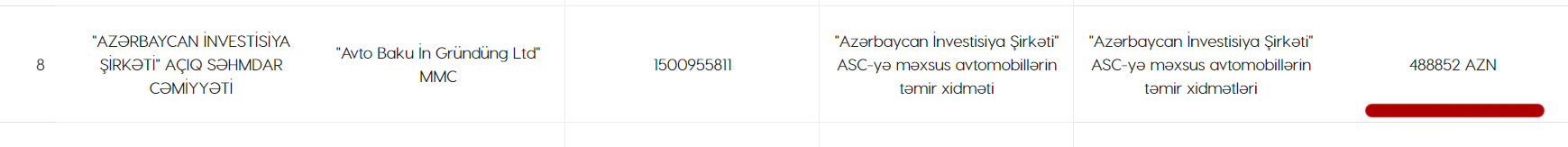 "Sizə bildirmək istəyirik ki, “Azərbaycan İnvestisiya Şirkəti” ASC-nin avtomobillərin təmiri ilə əlaqədar verdiyi elanda texniki səhv nəticəsində 48.852 (qırx səkkiz min səkkiz yüz əlli iki) AZN (ƏDV daxil) əvəzinə 488.852 (dörd yüz səksən səkkiz min şəkkiz yüz əlli iki) AZN qeyd edilmişdir. Artıq məsələ ilə bağlı etender.gov.az saytında müvafiq düzəliş edilmişdir".