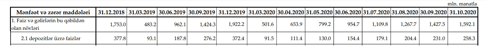 Azərbaycan bankları 2020-ci ilin 10 ayı ərzində depzoztlər üzrə 258.3 milyon manat faiz ödəyiblər.